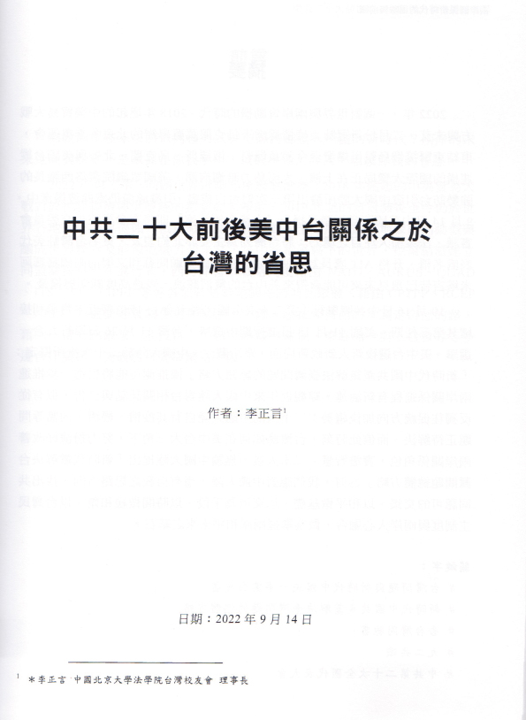 - 《中共二十大前後美中台關係之於台灣的省思》作者:李正言